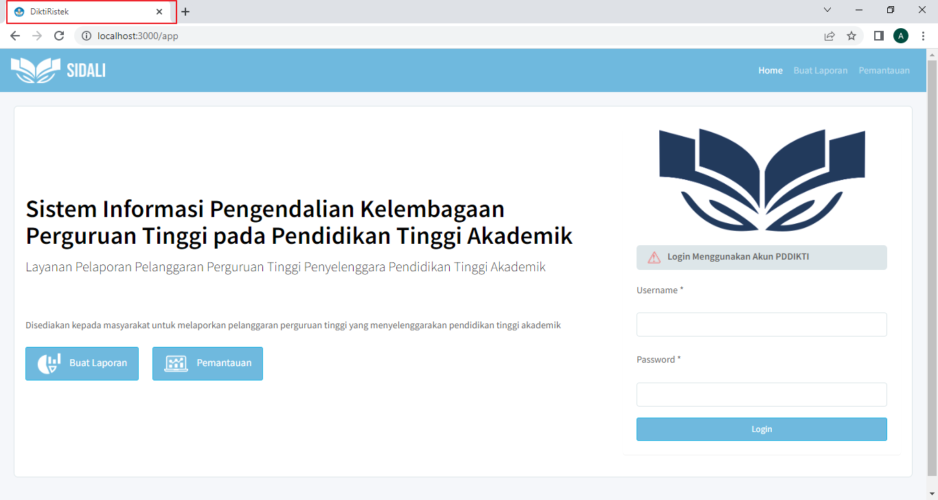 Judul/Tab "PTB DIKTIRISTEK" diganti menjadi "DIKTI RISTEK"